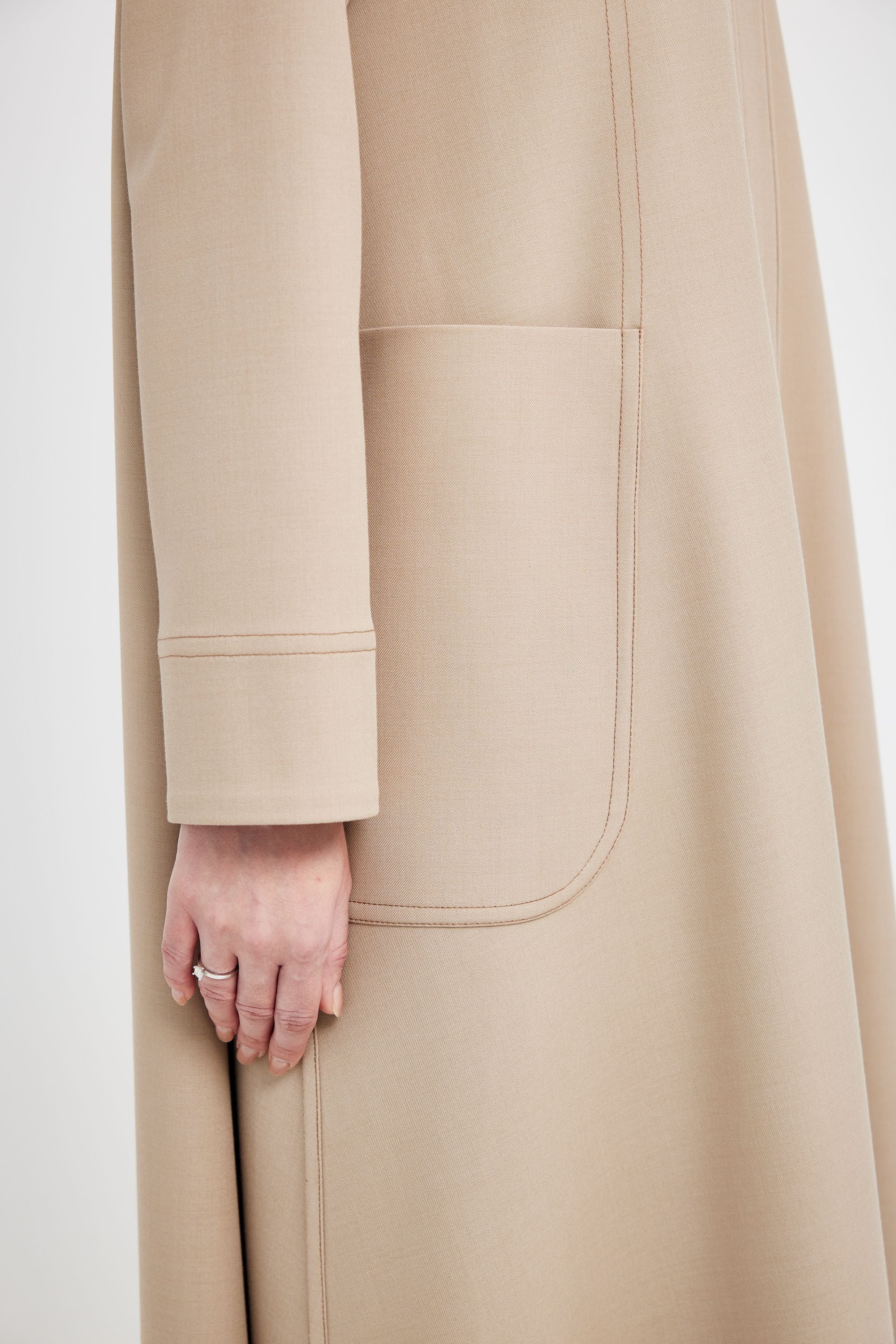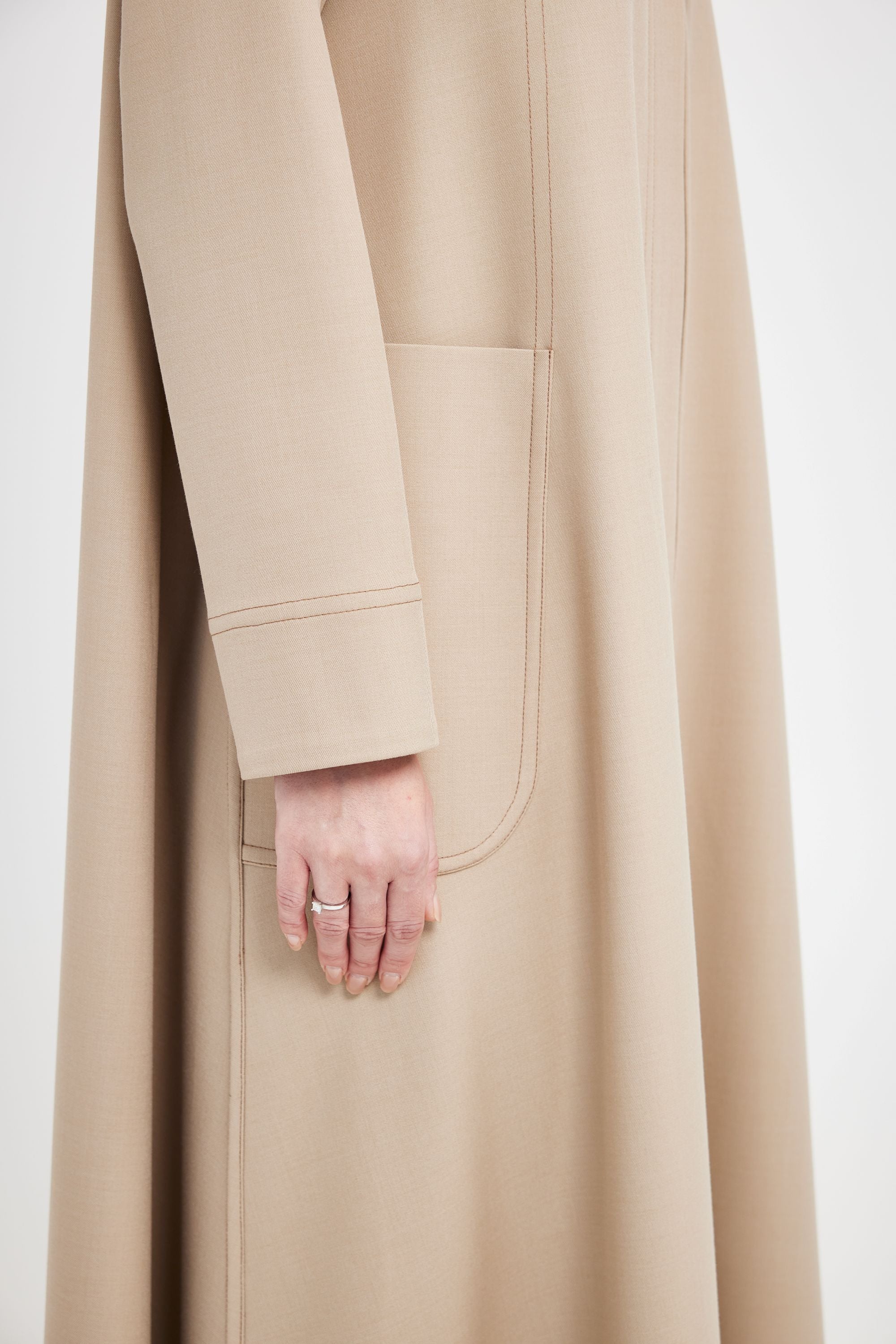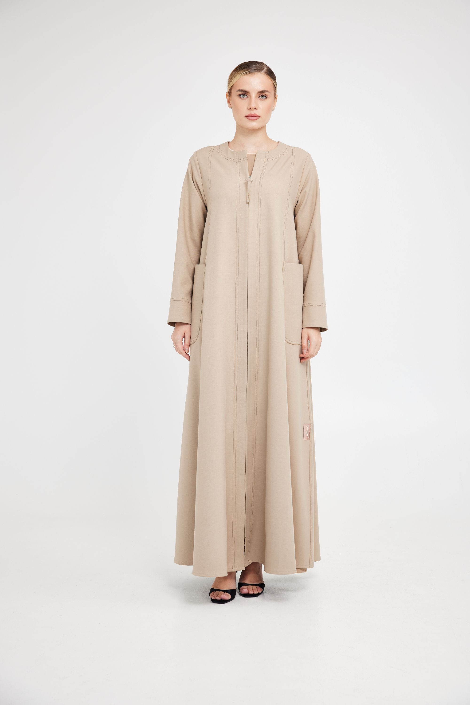 مصنوعة من قماش تويل بلون بيج أنيق. تتميز بقصة AK-01 الكلاسيكية، وجيوب أمامية عملية، وتفاصيل مدروسة تجمع بين الراحة والأناقة.