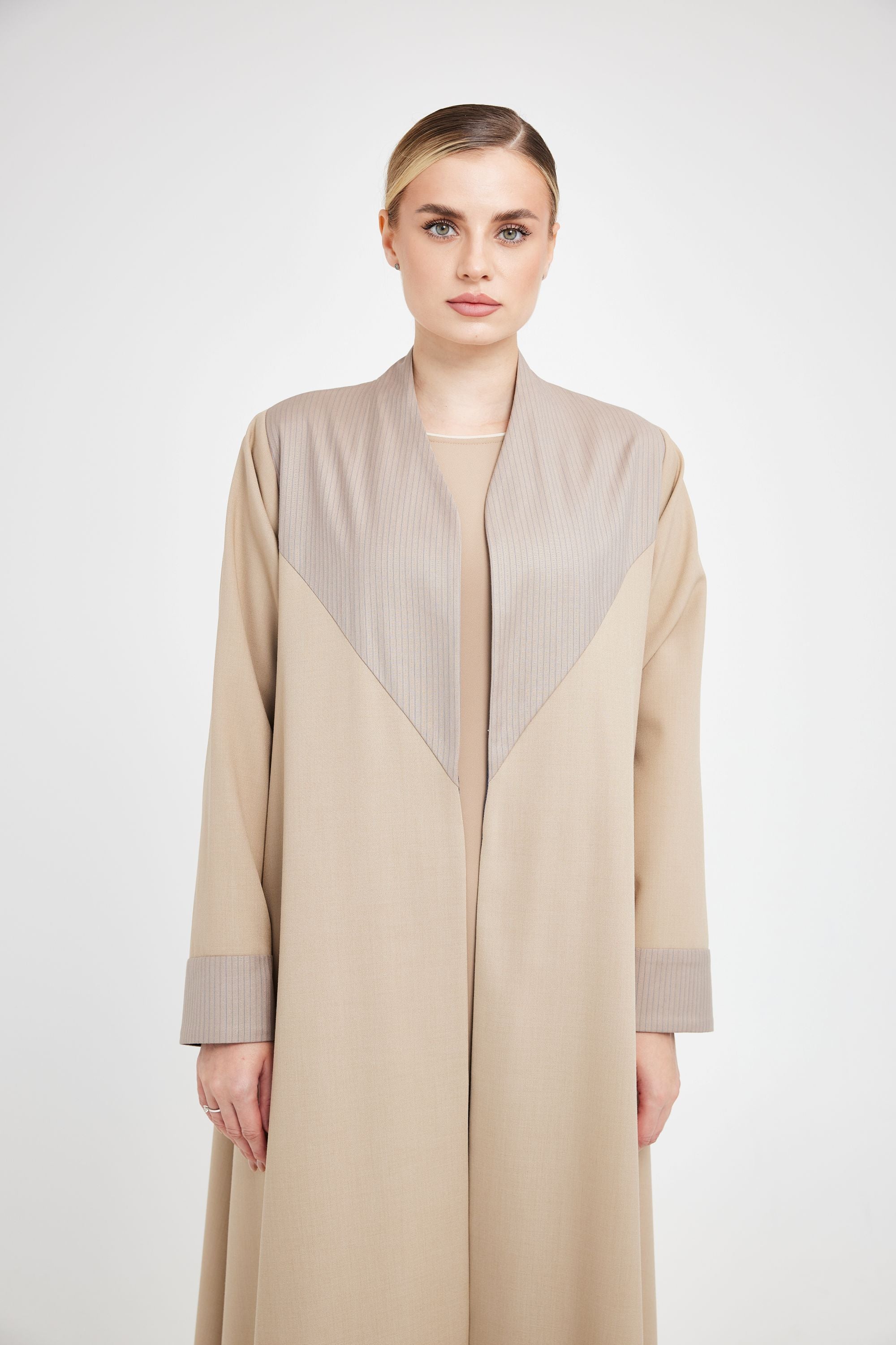 تعكس "Soft Structure" نسخة معاصرة من الأناقة المحايدة. مصممة من twill بلون بيج دافئ، تأتي العباءة بقصّة AK-01 تنساب بنعومة.