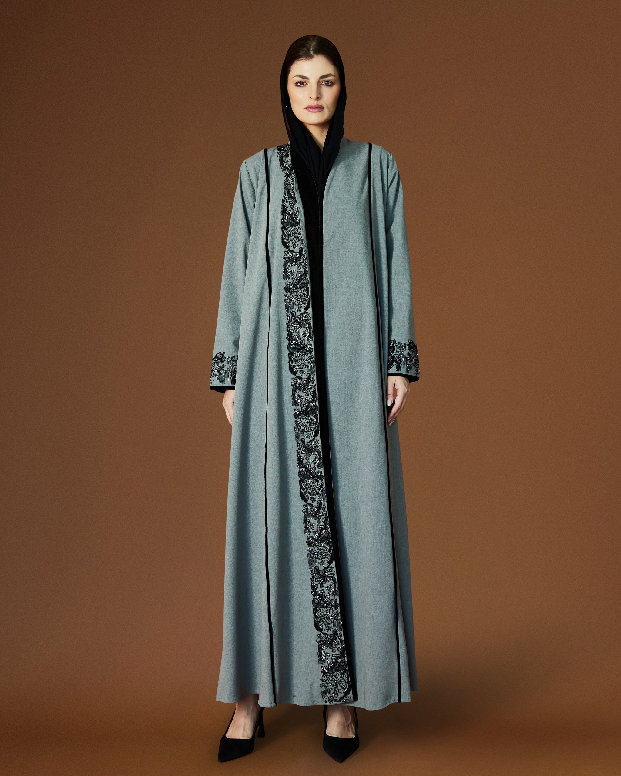 Structured suiting in our AK-02 cut detailed with elegant lace trim for a modern winter statement.