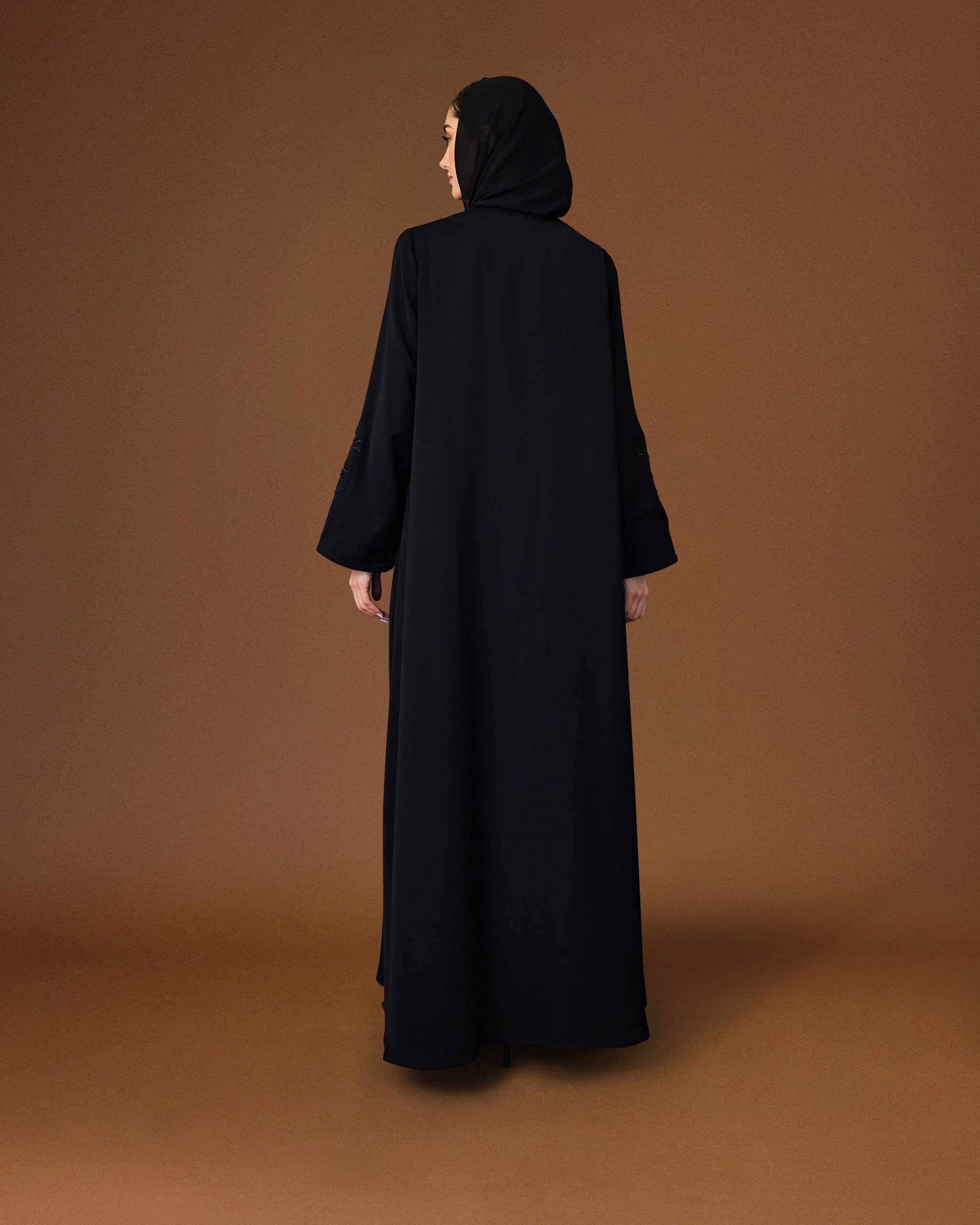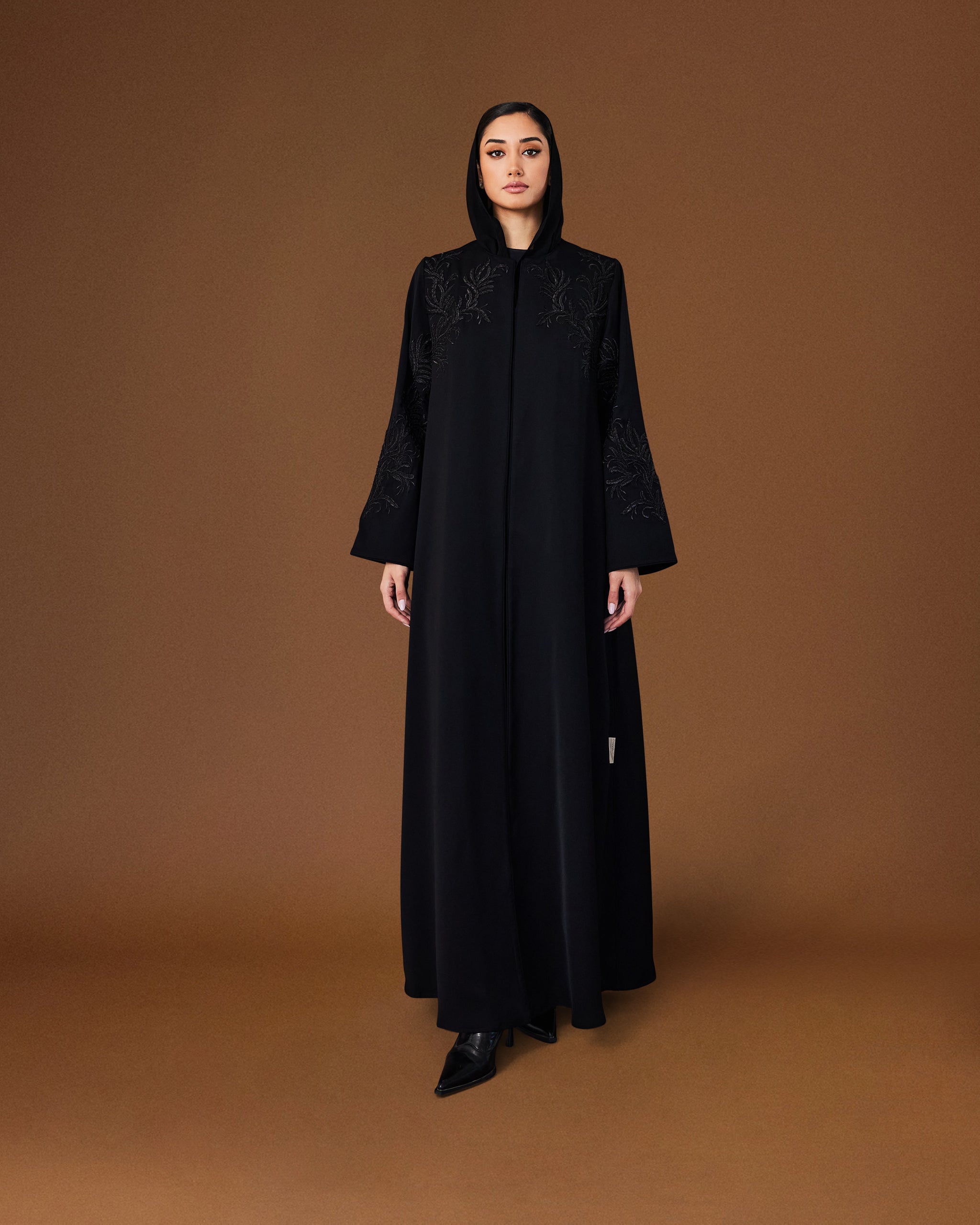 Midnight Bloom is crafted from fluid black crepe in the AK-02 cut, featuring a soft, flowing silhouette enhanced by delicate tonal embroidery. The balanced proportions and subtle detailing create a refined presence that feels both timeless and quietly expressive. Designed for effortless elegance across day and evening wear.