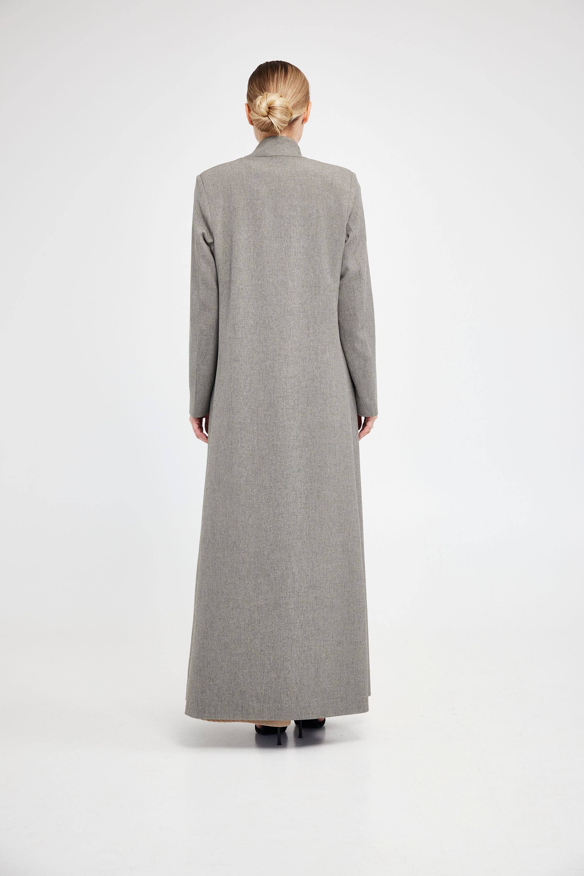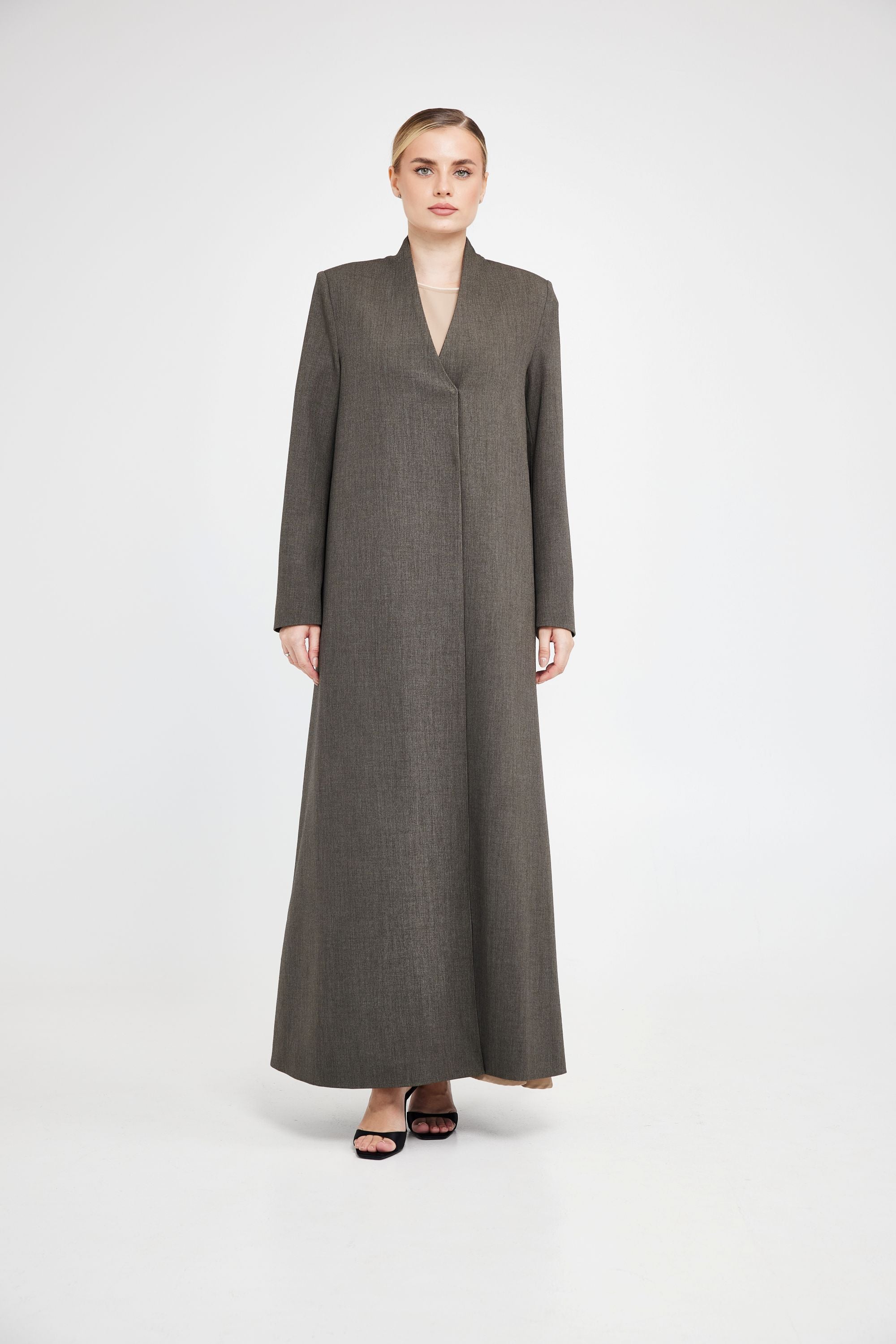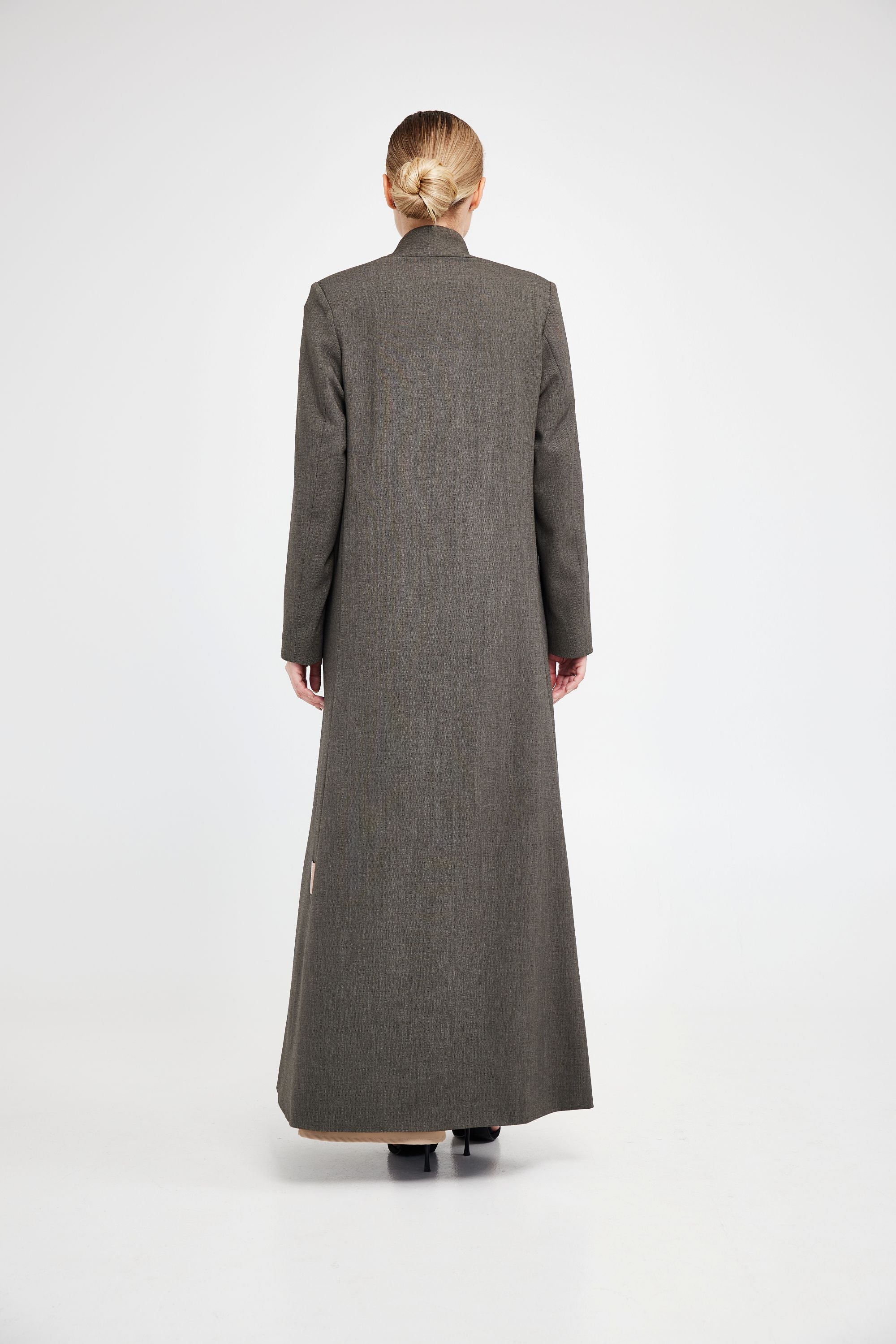 Tailored with clarity and structure, "Slate Edit" is cut from refined twill fabric in your choice of muted olive green or soft gray. The AK-06 silhouette brings sharp shoulders and a clean neckline to the forefront, offering a modern, minimal edge. Designed for women who favor polish with purpose, this abaya is a statement in subtle power — ideal for back-to-Workdays or the everyday stride