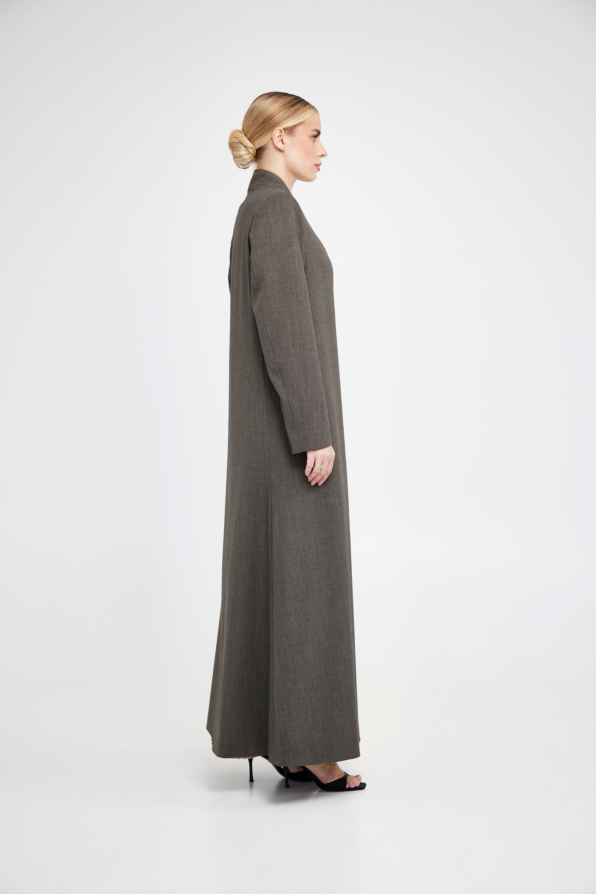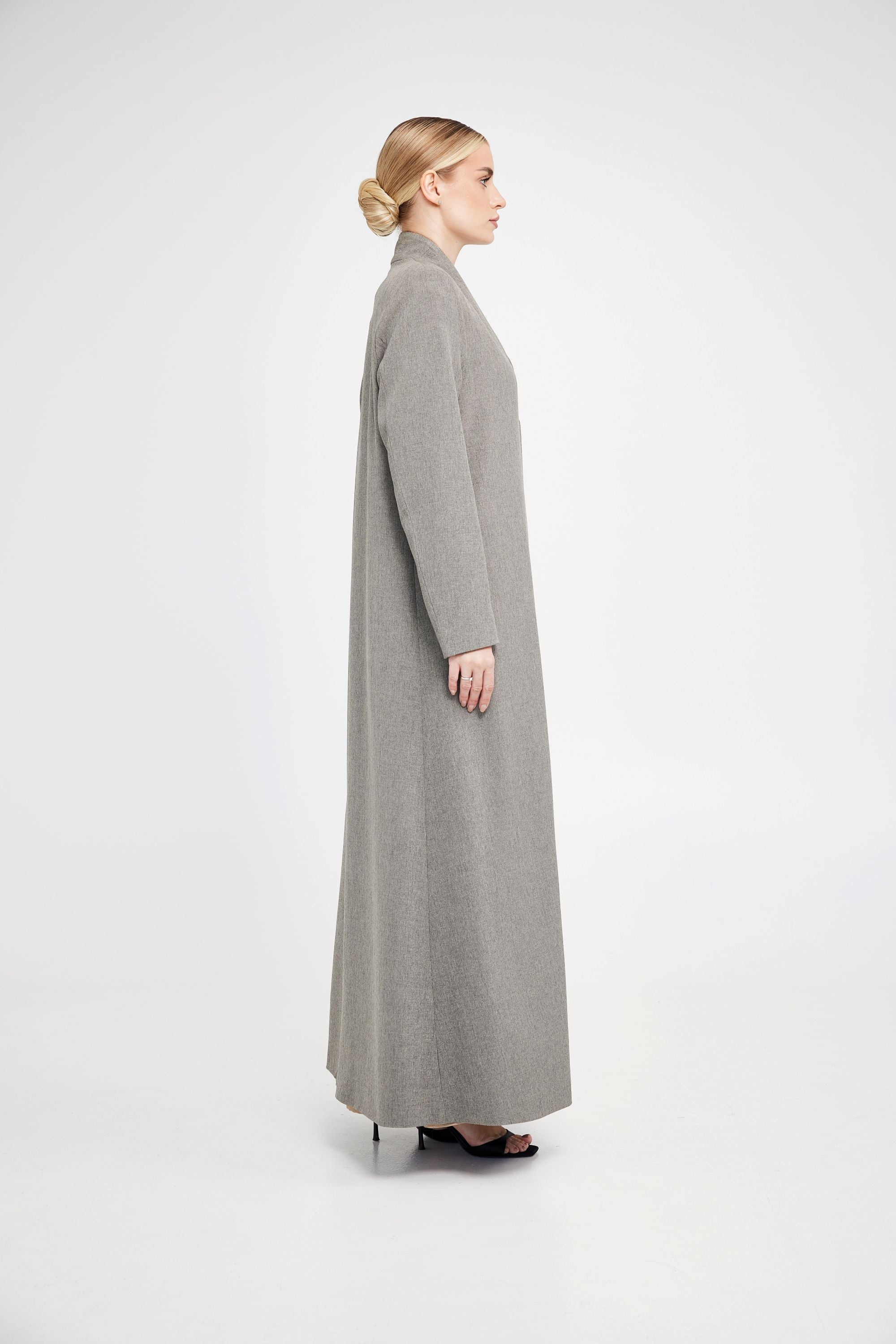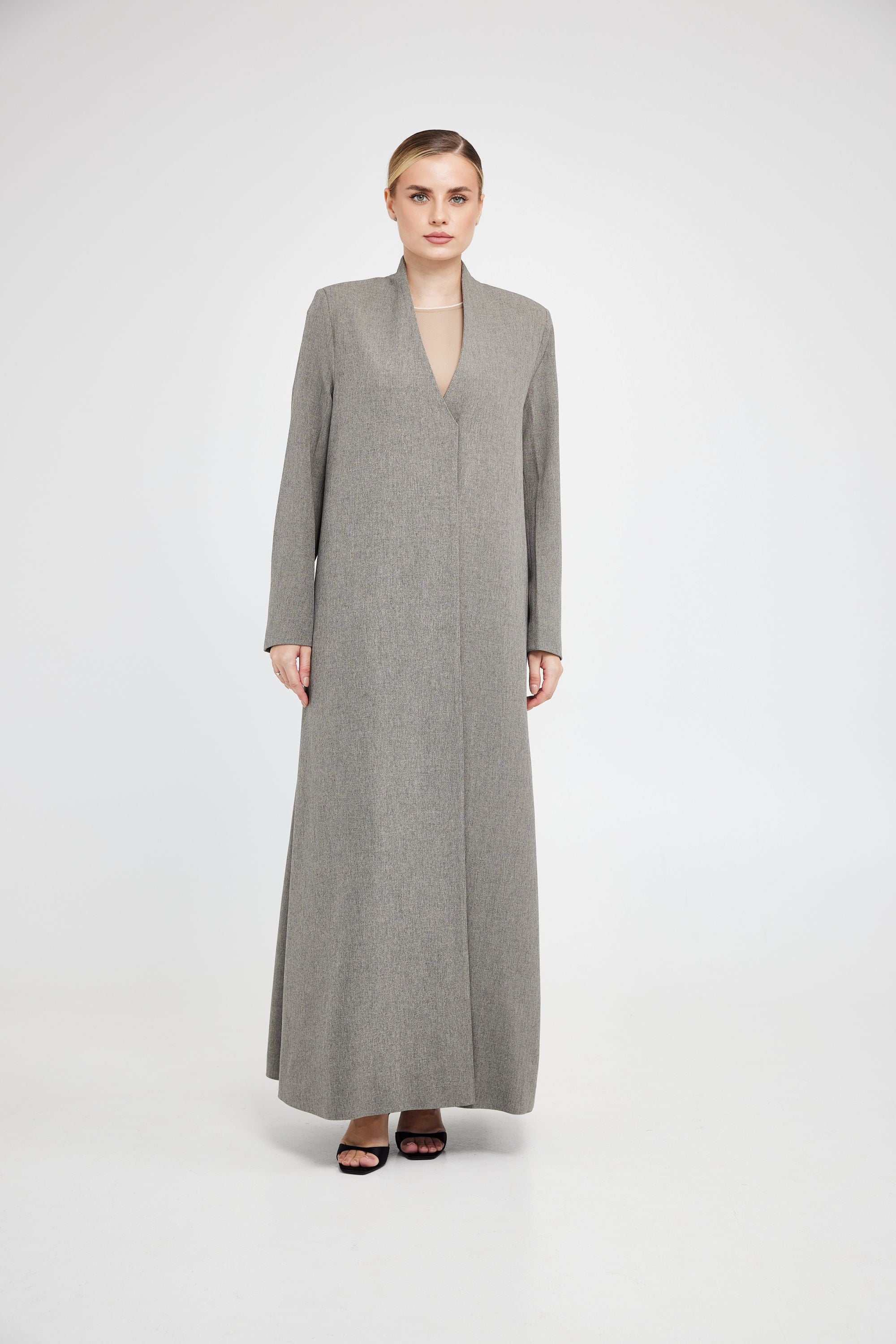 Tailored with clarity and structure, "Slate Edit" is cut from refined twill fabric in your choice of muted olive green or soft gray. The AK-06 silhouette brings sharp shoulders and a clean neckline to the forefront, offering a modern, minimal edge. Designed for women who favor polish with purpose, this abaya is a statement in subtle power — ideal for back-to-Workdays or the everyday stride